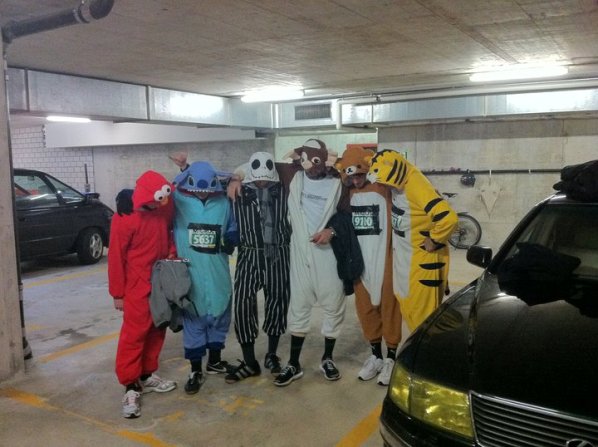 We would be running in the „Run 4 Fun“ class where ridiculous costumes were allowed. This was perfect for us, since we believe wearing neon-colored skintight running pants is extremely lame.