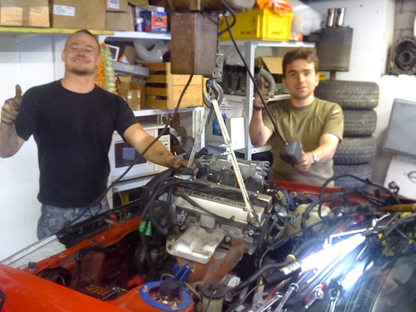 Us Martins at work.. and out is the old engine! (all chris did was taking pics.. j/k!! )