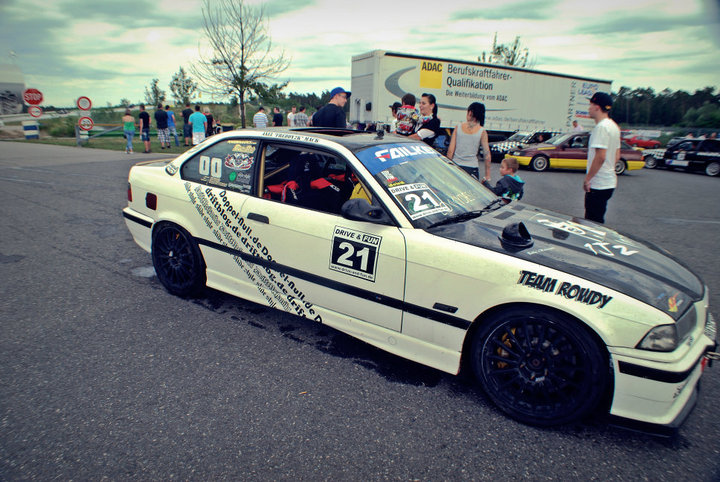 I started riding motox with an age of 5. Then switched to kart, supermoto and now its grip/drift. I really like trackdays with my friends cause its like going into the karthall and race but faster and harder 😀 Someday my brother booked a drifttraining at the Sachsenring, Instructor was Wolfgang Weber which is a racedriver, we met him on a supermoto event. But my brother got ill or something and gave me his car (330D E46 Bimmer WAGON!) and I drove up the 550km to the Sachenring by night. There I met Martin, Dino and Dimi from the Driftblog, that’s how I got addicted, going sideways in 3rd gear at about 140km/h downhill to the Omega in a “FamilyVan”