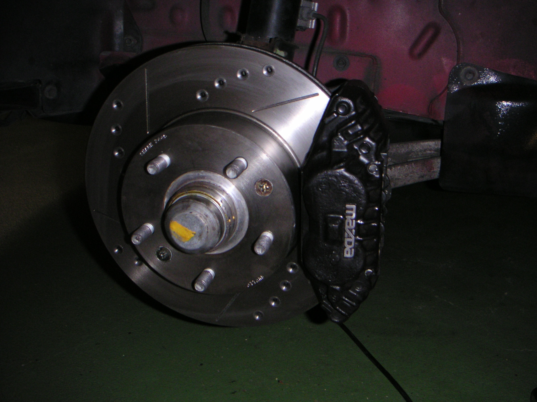The front suspension is nothing special and up to the task quite well. I find it amazing, that the control arms are out of aluminium from the factory. The FC is equipped with some nice aluminium calipers front and rear. Front is 4-pod, vented discs. Rear is 1-pod, vented discs. Braking power is good, althoug the system suffers from fading quite fast, due to comparably small diameter discs.