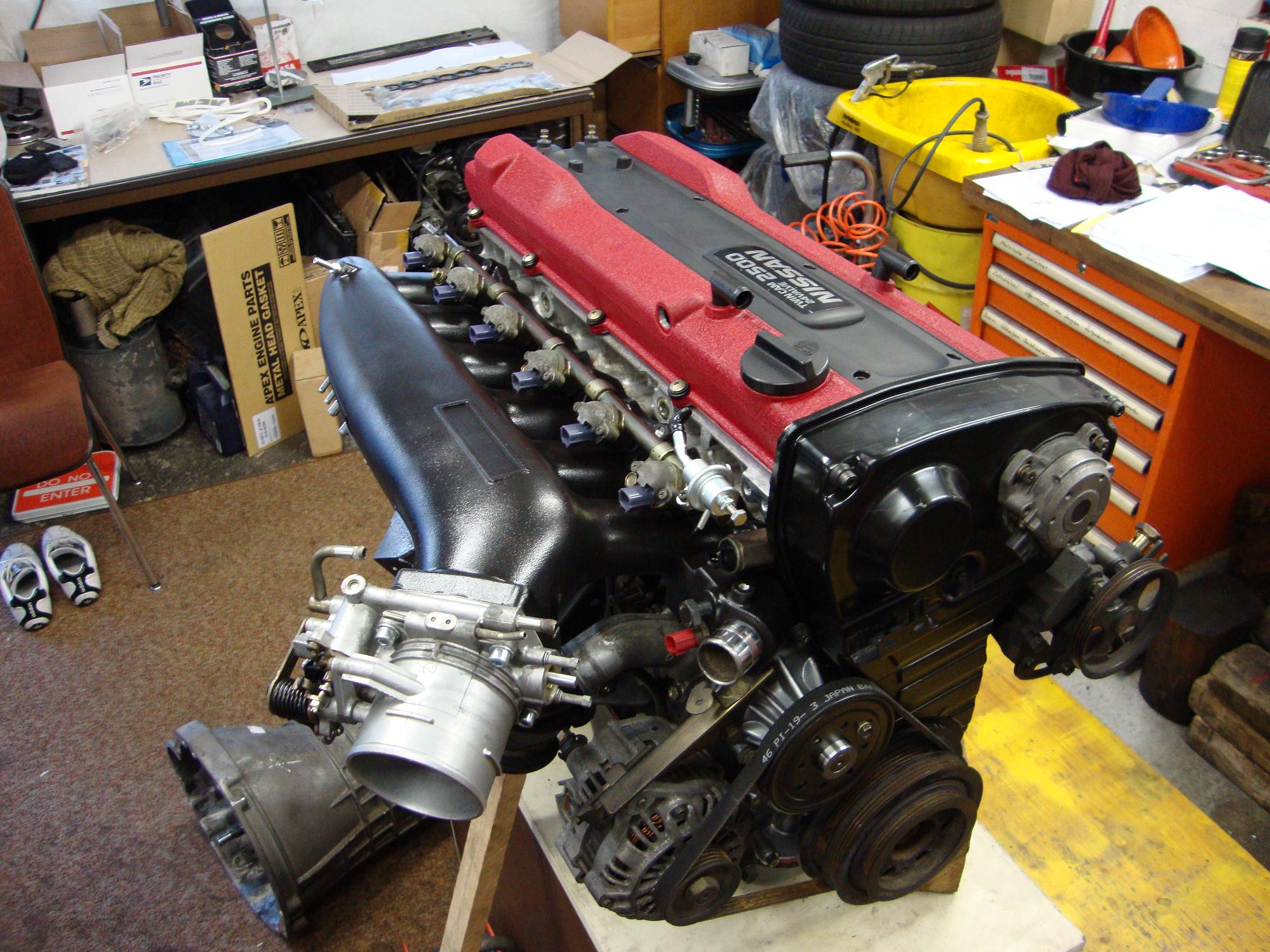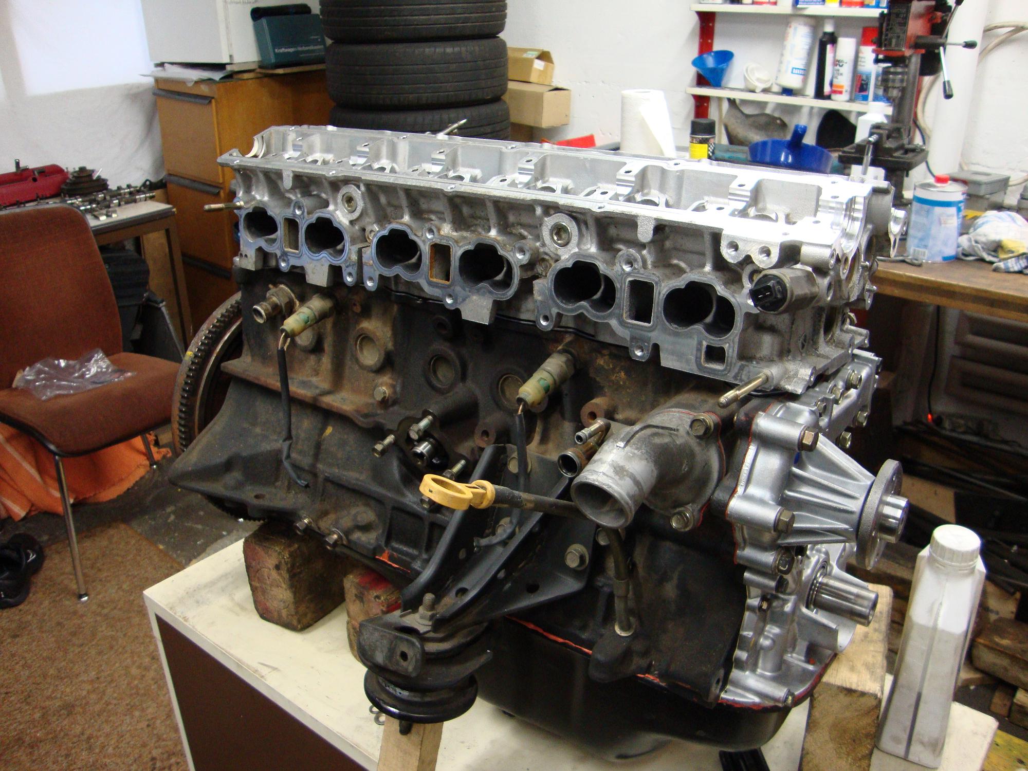 This is what it looked with the fancy cam covers on it an the nice manifold (incl. injectors etc.) installed. It already looked like serious business, although not being able to run one second… hehe