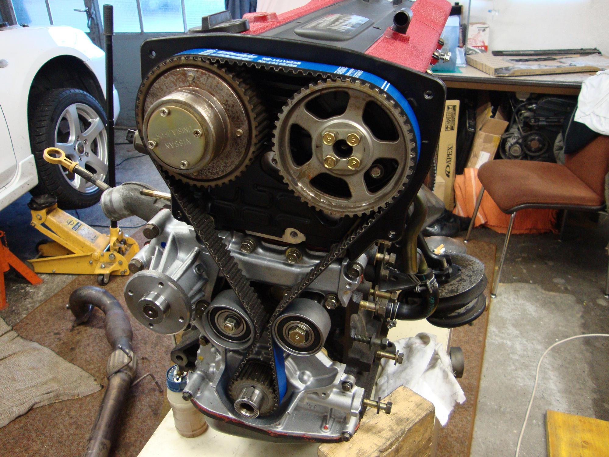 I had to reinstall the stock camshafts and align them properly for the belt to be mounted. I used a strengthend cam belt, since the engine is planned to run higher RPM and that for longer periods than usual. So it is never a bad idea to spend some money on engine safety features as this example.