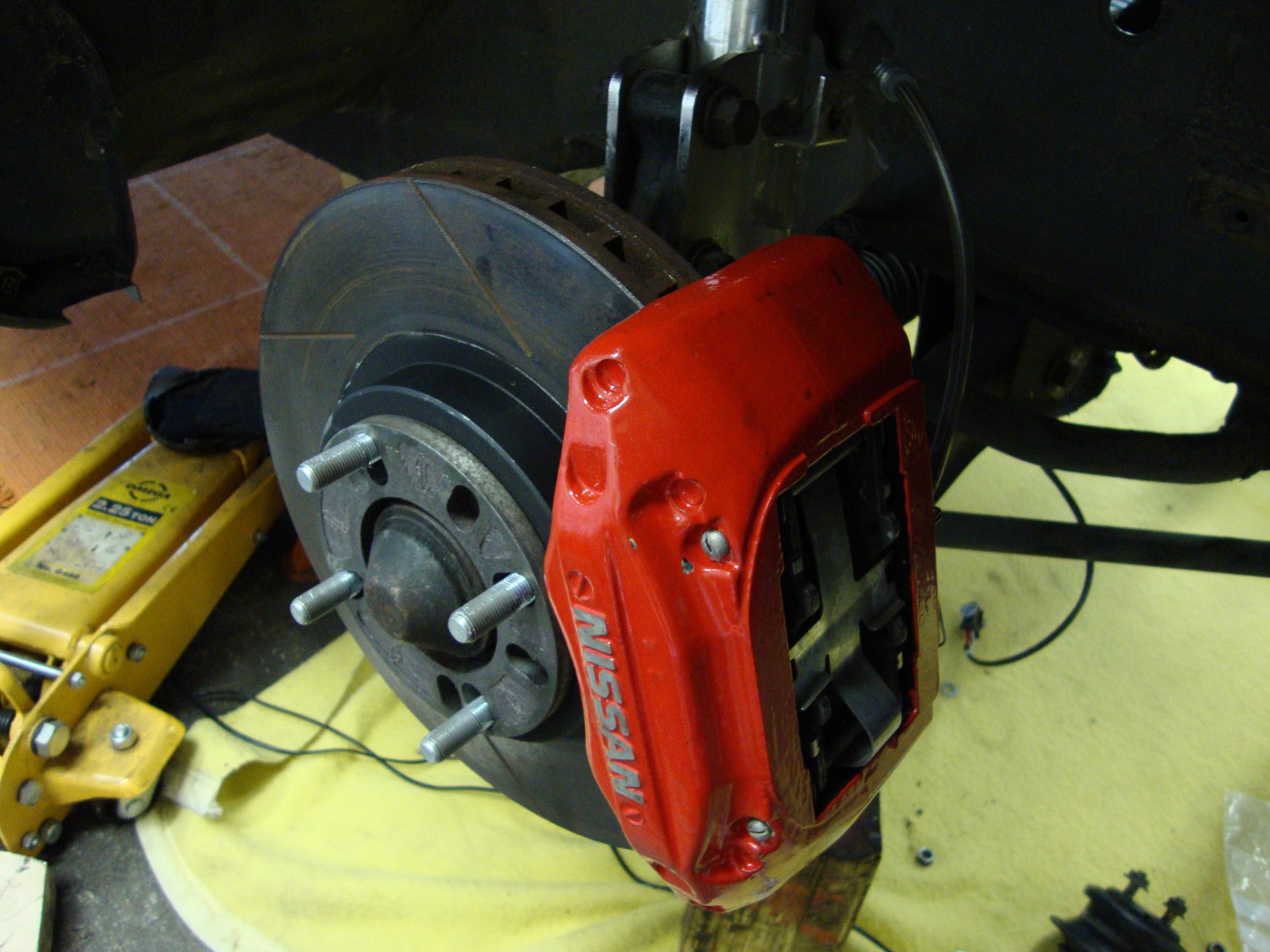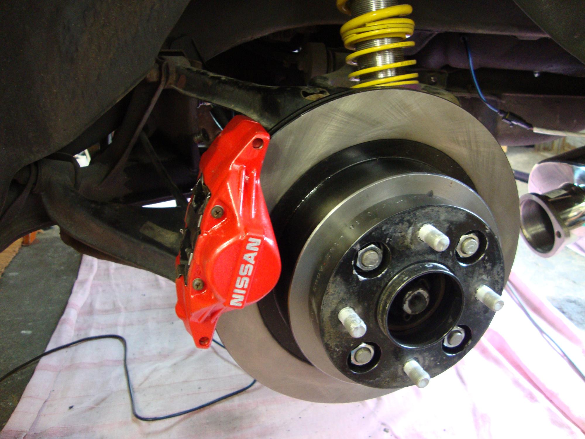 Don’t make your car faster without upgrading the brakes (sounds like your Mama…). In my case I opted for the more or less plug&play Z32 alu calipers and discs in the rear…