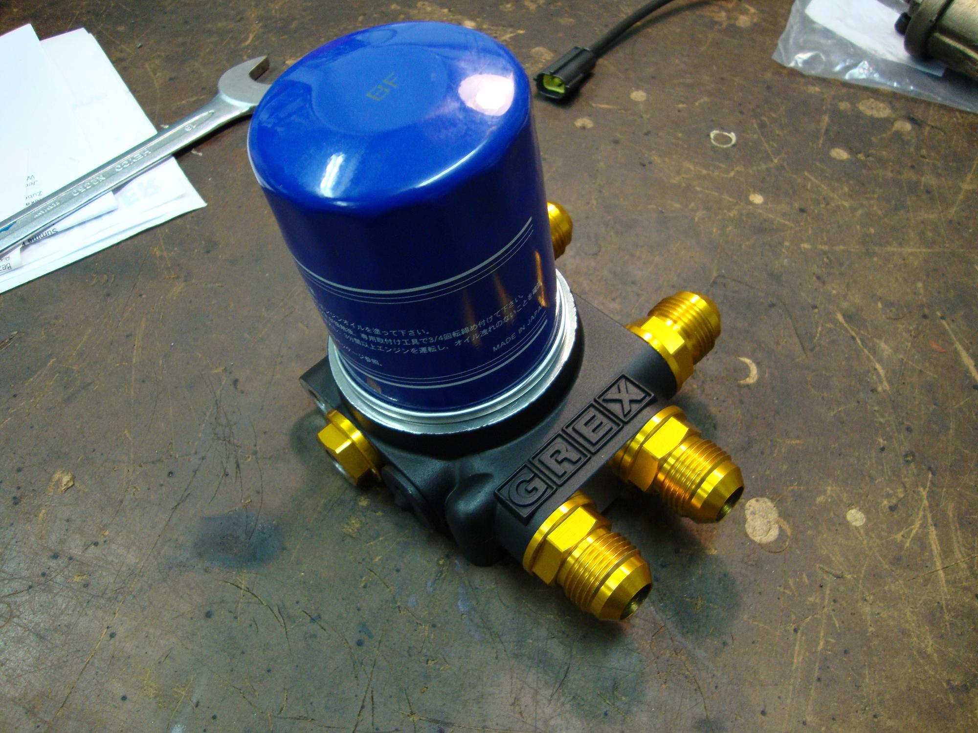As RB engines produce a lot of heat, I also wanted to install a rather good sized 19-row oil cooler. The positioning of this thing is crucial, but more on that later. In order to properly hook up all the additional oil hoses and gauge sensors, you best get one of those oil filter relocation kits.
