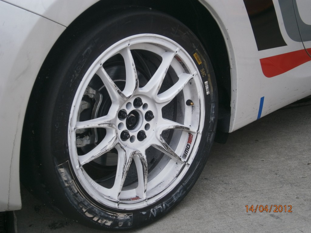 Die erste Runde zeigte dass die Strecke an einigen Orten noch etwas Feucht war, aber mit den Slicks sehr gut zu bewältigen.