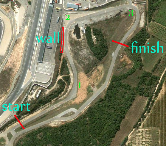 The only difference is that after the first high speed left hander there was a nice outside wall on the uphill making sure you would just bounce of it and stay on the course if you went too fast into it. If you hit the wall, something like this might have happened to your car 🙁