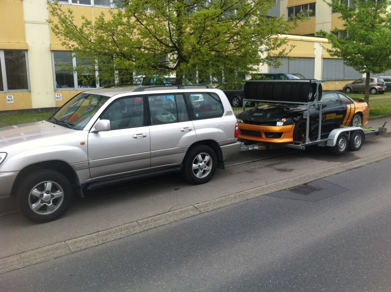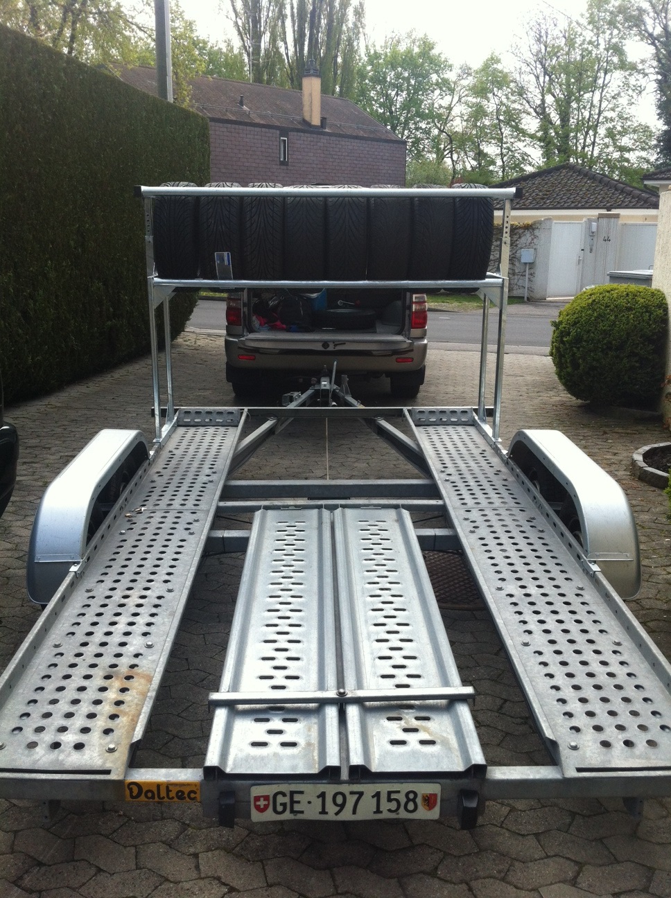 Thanks to Daltec for the great work and I felt more confident towing my car on the highway at high speeds (shhhh don’t tell anyone) as my trailer had been properly serviced and checked meticulously. I was especially concerned by the extra weight this tire rack was gona create on my tow hook so that’s why I wanted to make sure the trailer was in top shape. Due to this extra weight, I also decided to finally sell my old tow car (the lex RX) and get something better suited for this kind of activity, this being a 2003 Toyota Land Cruiser 500. Let me tell you this car is a beast, turbo diesel powered monster. Back home a couple hours later, I started loading the new tire rack with my fresh rubber for the weekend.